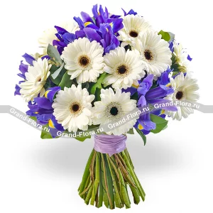 Весенняя серенада - букет из фиолетовых тюльпанов и розовой эустомы