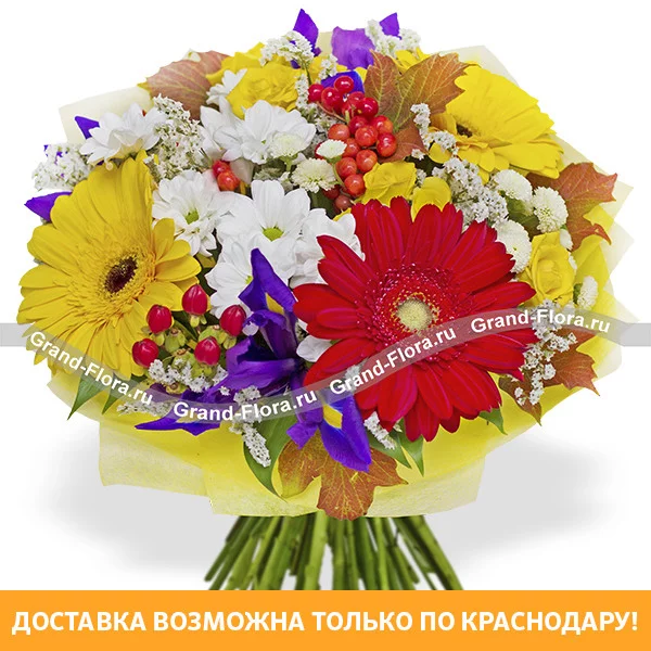 Яркие краски, собранные из красной, желтой, а также синей палитры, создают настоящий осенний шедевр. Этими аппетитными эмоциями хочется поделиться с теми, кто особенно дорог, ведь любимым мы всегда желаем жизни со вкусом радости!